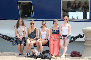 Today was the day for visiting Cleveland. In the first few hours we did a "Lolly the trolley - Tour", where we heard many interesting facts about the city, although 2 hours were a bit long for paying attention to the tour guide. We had lunch at the local science centre and then explored this museum on our own, which was quite fascinating. Because that was still not enough cultural programme for a day, we also got a good look on a ship from the 19th century. After this, we finally got to the beach in the afternoon. This one is called "Mentor Headlands Beach", is breathtakingly beautiful, has great rocks, billions of seagulls and even a lighthouse. We enjoyed our time there and ate "traditional" dinner: cheeseburgers with grilled beef.